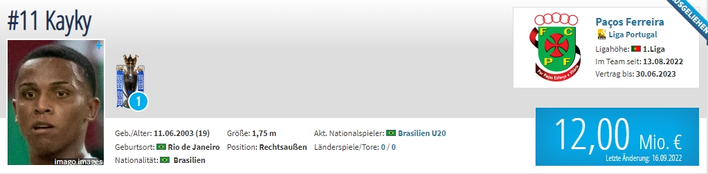 年龄:19岁 国籍:巴西 现效力球队:曼城外租至葡超球队费雷拉