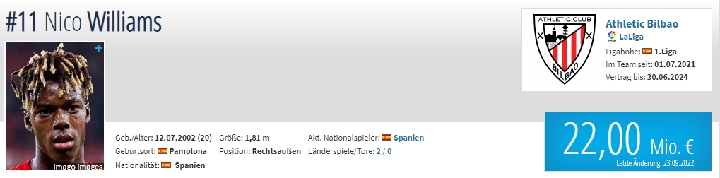 年龄:20岁 国籍:西班牙 现效力球队:毕尔巴鄂竞技