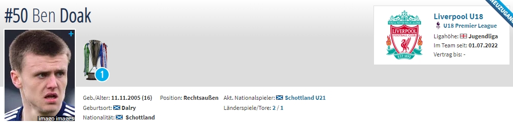 年龄:16岁 国籍:苏格兰 现效力球队:利物浦U18