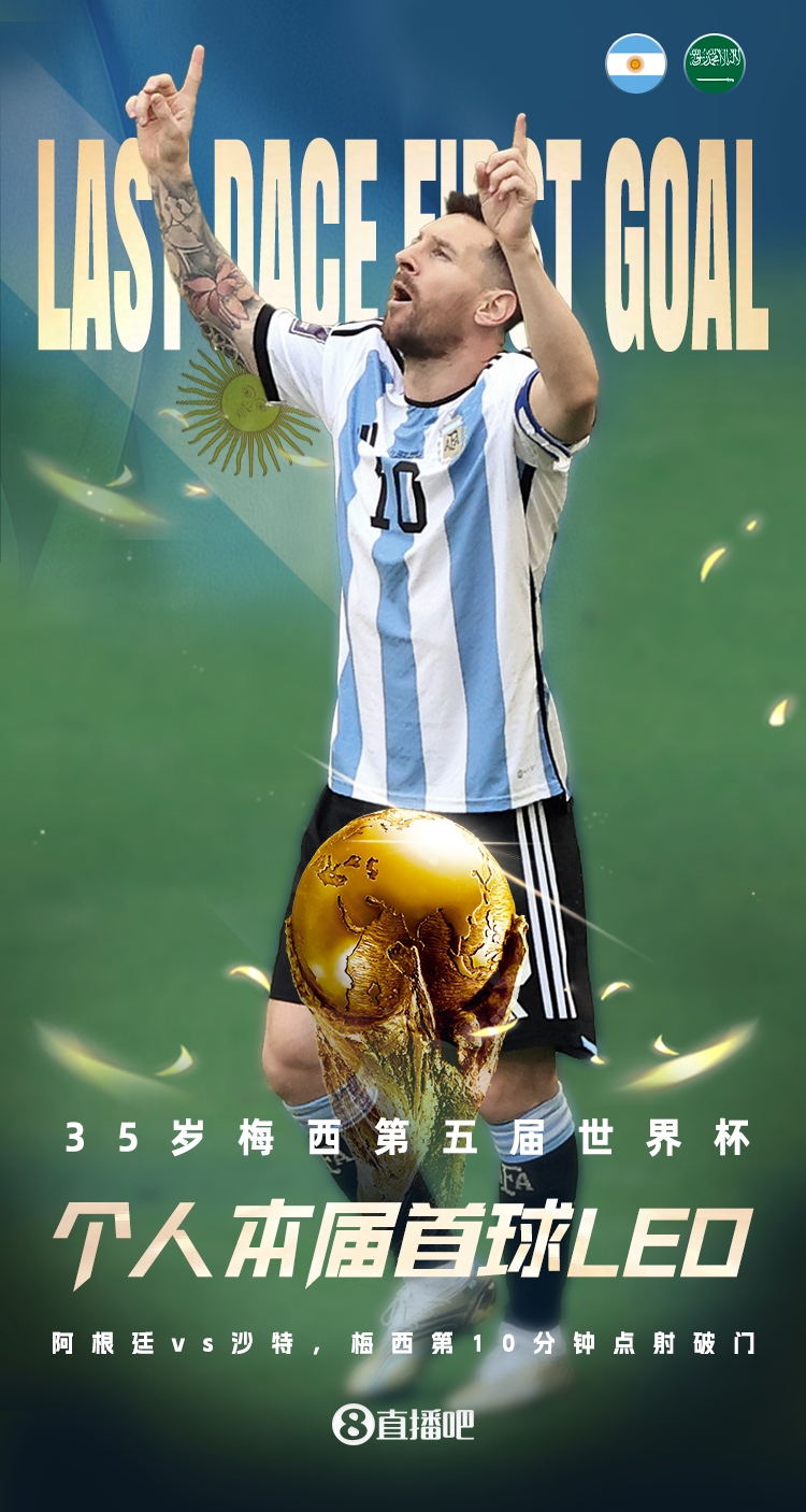 第10分钟,梅西主罚点球命中!阿根廷1-0领先!梅西打进个人本届世界杯首球,个人世界杯数据20场7球5助!
