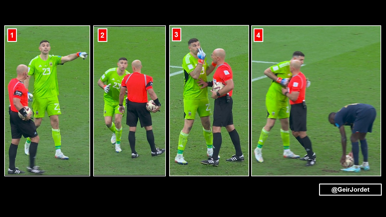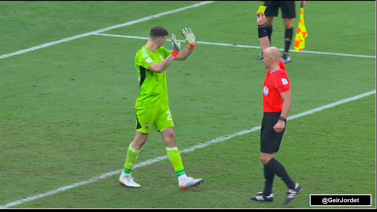 在世界杯决赛中,马丁内斯就因过于“活跃”,在法国主罚第四粒点球前(穆阿尼最终罚进),被忍无可忍的波兰主裁马齐尼亚克黄牌警告,赛后报告中对此的解释是“非体育行为”。