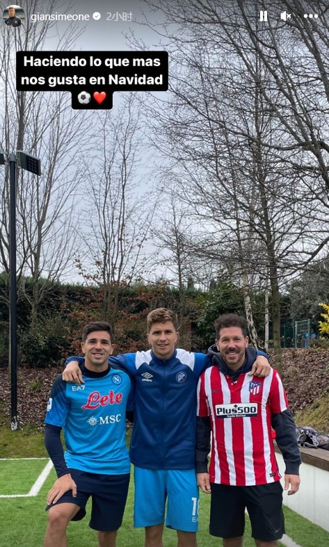 直播吧12月24日讯 马竞主帅迭戈-西蒙尼的二儿子詹卢卡-西蒙尼更新了自己的Instagram动态,晒出了与自己的父亲以及大哥乔瓦尼-西蒙尼的在球场内的合照,并表示道:“在圣诞节做我们喜欢的事情。”