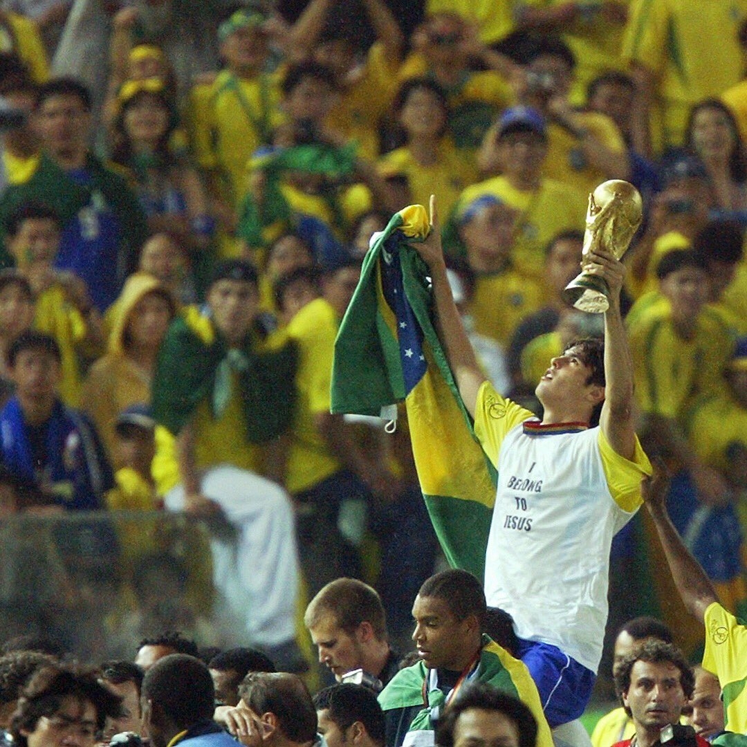 02年世界杯巴西战胜德国成功夺得大力神杯,当时年仅20岁的卡卡随队捧杯。夺冠后,卡卡被人群高高举起,他本人也是仰天庆贺,举起国旗以及大力神杯,你是否记得这幅画面呢?