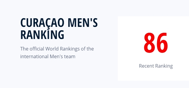 库拉索FIFA排名第86位,目前比中国男足落后6名。
