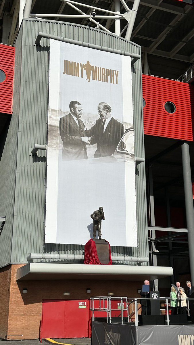 直播吧5月4日讯 在当地时间5月3日,曼联揭幕了俱乐部为已故传奇教练吉米-墨菲树立的雕像。