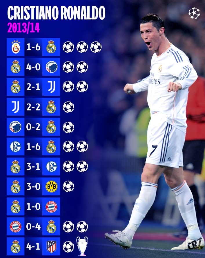 🏆欧冠官方晒C罗13-14赛季进球数据:11场17球历史之最💥