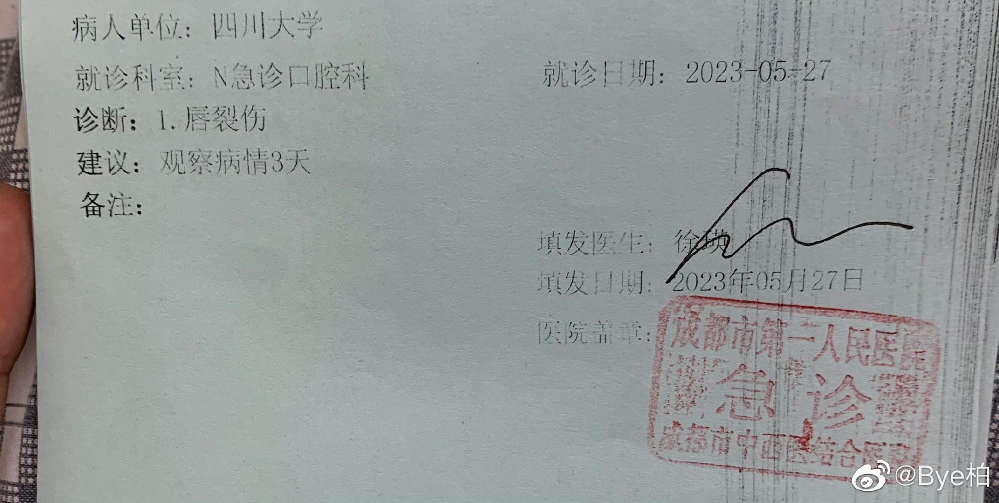 网传视频中,有球员坐在地上,面部出血。还有网友晒出医院检查结果,称被打球员遭到头部损伤,唇裂伤以及牙脱落等伤害。