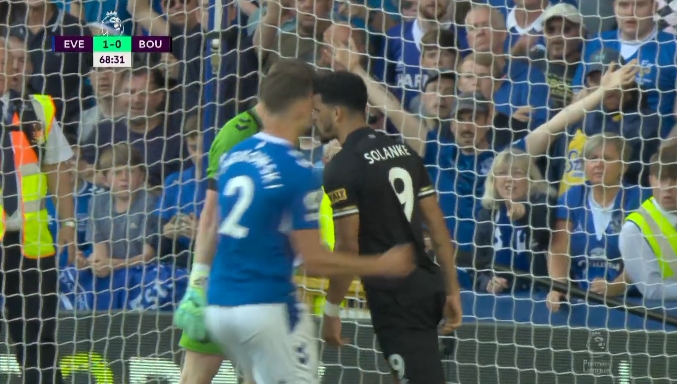 直播吧5月29日讯 埃弗顿vs伯恩茅斯第68分钟,索兰克和皮克福德在门前爆发冲突。