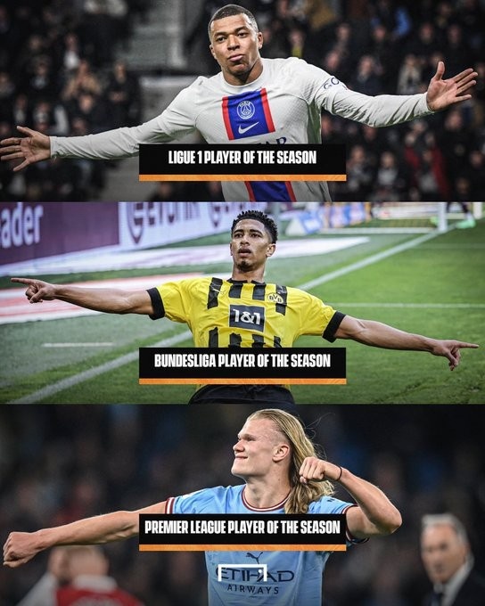 法甲MVP姆巴佩24岁、英超MVP哈兰德22岁、德甲MVP贝林厄姆更是仅为19岁,年轻一代的崛起已经势不可挡。