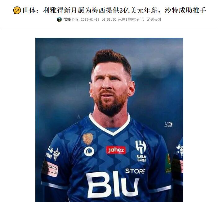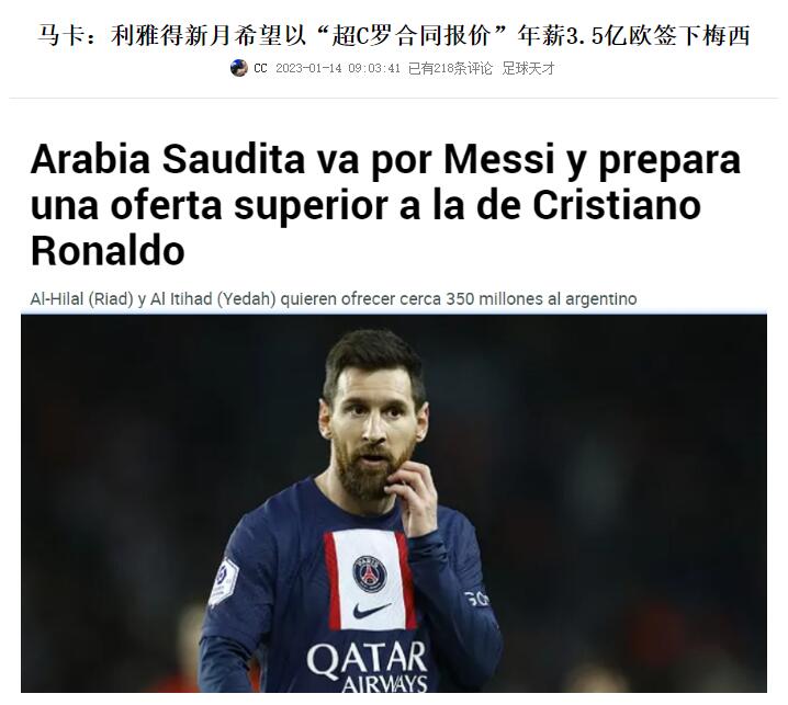 1月12日,西媒《世界体育报》:利雅得新月愿为梅西提供3亿美元年薪