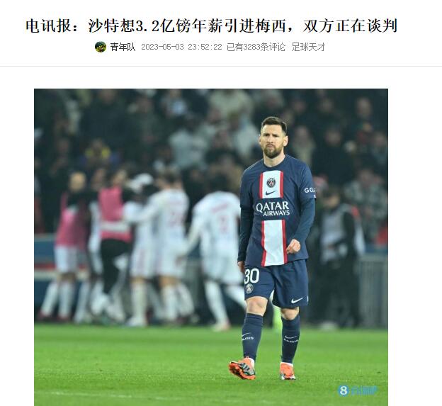 5月3日,英媒《电讯报》:沙特政府正准备3.2亿镑年薪引进梅西,双方正在谈判