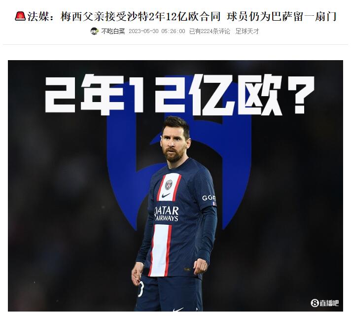 5月30日,法媒Footmercato:梅西父亲接受沙特2年12亿欧合同,球员仍为巴萨留一扇门