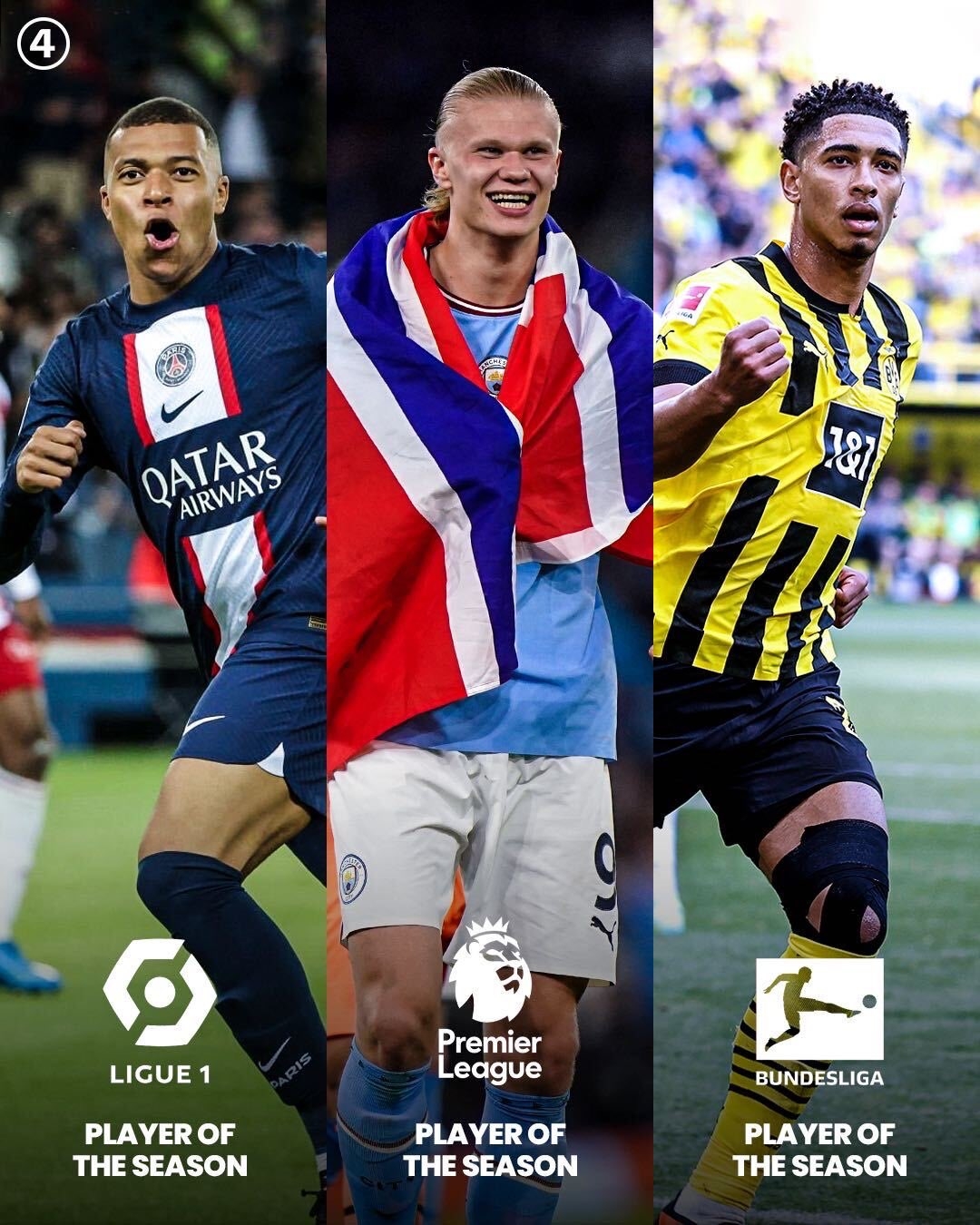 未来足坛三大天王?哈兰德、姆巴佩、贝林厄姆,英法德赛季最佳!