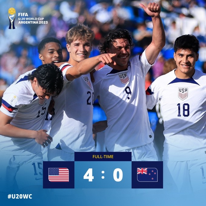 直播吧5月31日讯 U20世界杯16强战先赛一场,美国国青4-0完胜新西兰晋级。