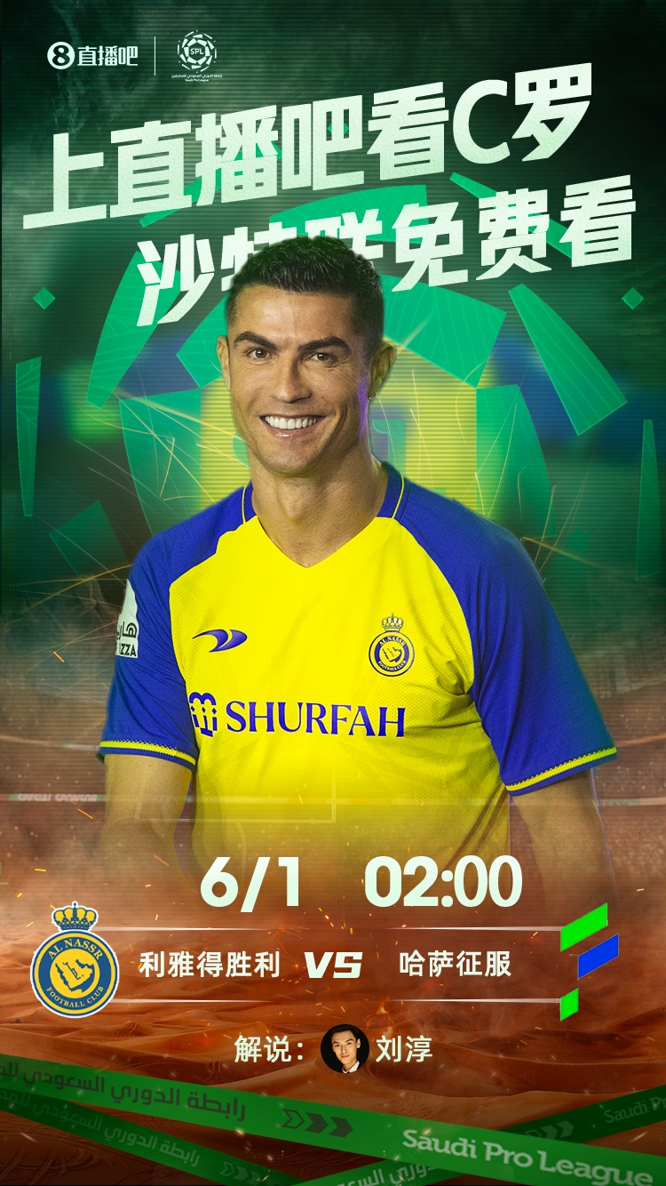 直播吧5月31日讯 北京时间6月1日凌晨2点,沙特联赛最后一轮,利雅得胜利主场迎战哈萨征服。直播吧届时将带来本场比赛的免费视频直播。