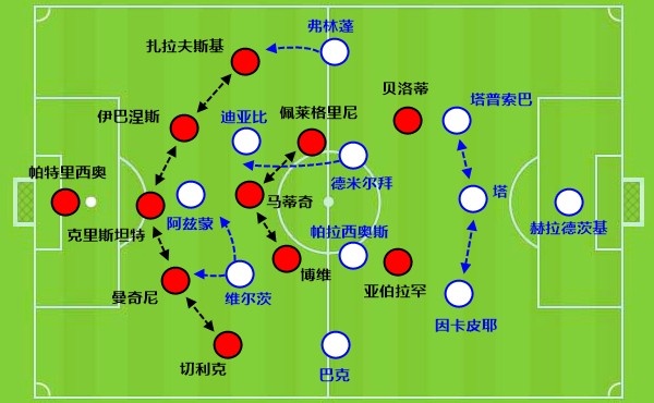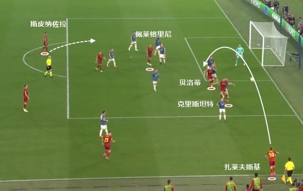 同时罗马在攻防转换时,会有相当多比例的长传,亚伯拉罕或者是贝洛蒂对于第一点的控制很重要。