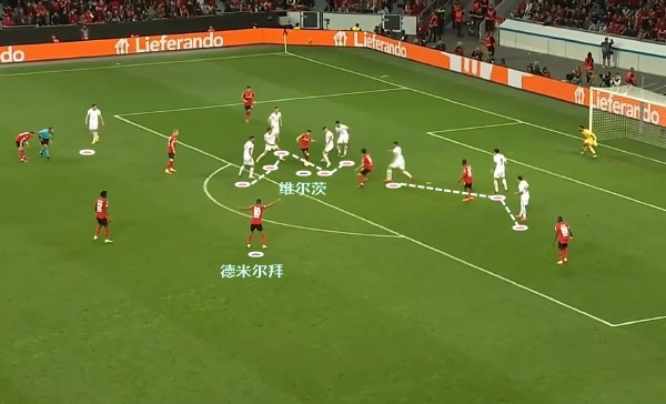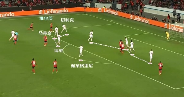勒沃库森全场比赛,几乎没有打出一次像样的肋部进攻。马蒂奇的卡位,让维尔茨非常难受。