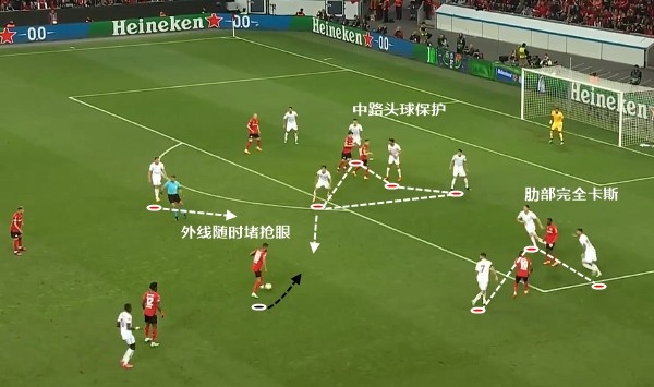 同时外线的位置,还有2名罗马中场或者是回防的前锋,会随时做好封堵和干扰远射的准备。