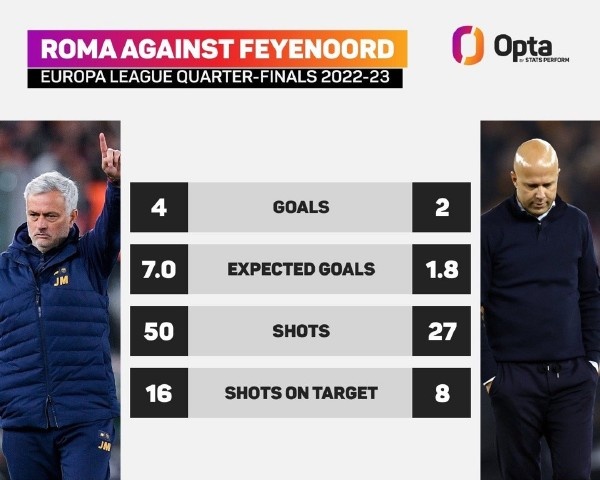 从统计数据可以看到,罗马两回合比赛居然射门50次,预期进球7.0比1.8占据绝对优势。穆里尼奥的进攻,也是很有细节的。