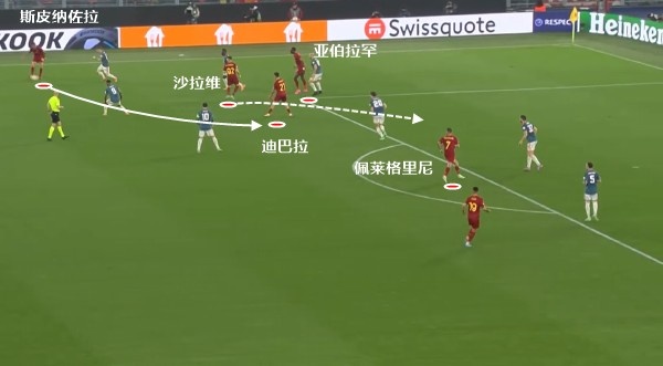 穆里尼奥手里,有迪巴拉、沙拉维和斯皮纳佐拉这样的技术优势点。利用亚伯拉罕等力量强点顶出空间(贝洛蒂、前插的克里斯坦特,以及佩莱格里尼也能增加对抗),让技术好的球员打出小配合,是穆里尼奥逆转费耶诺德的成功经验。