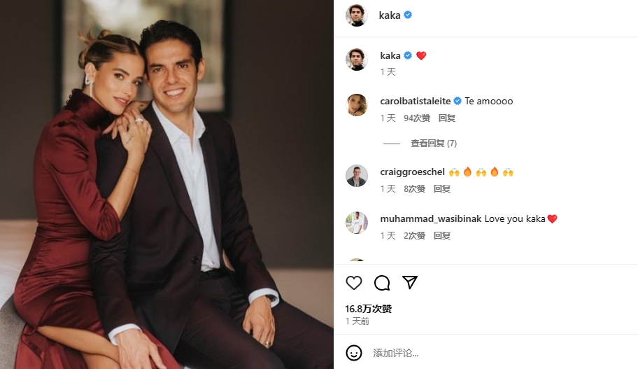 我都得避让三分!卡卡晒自己和妻子恩爱合照,后者今年刚诞下一女