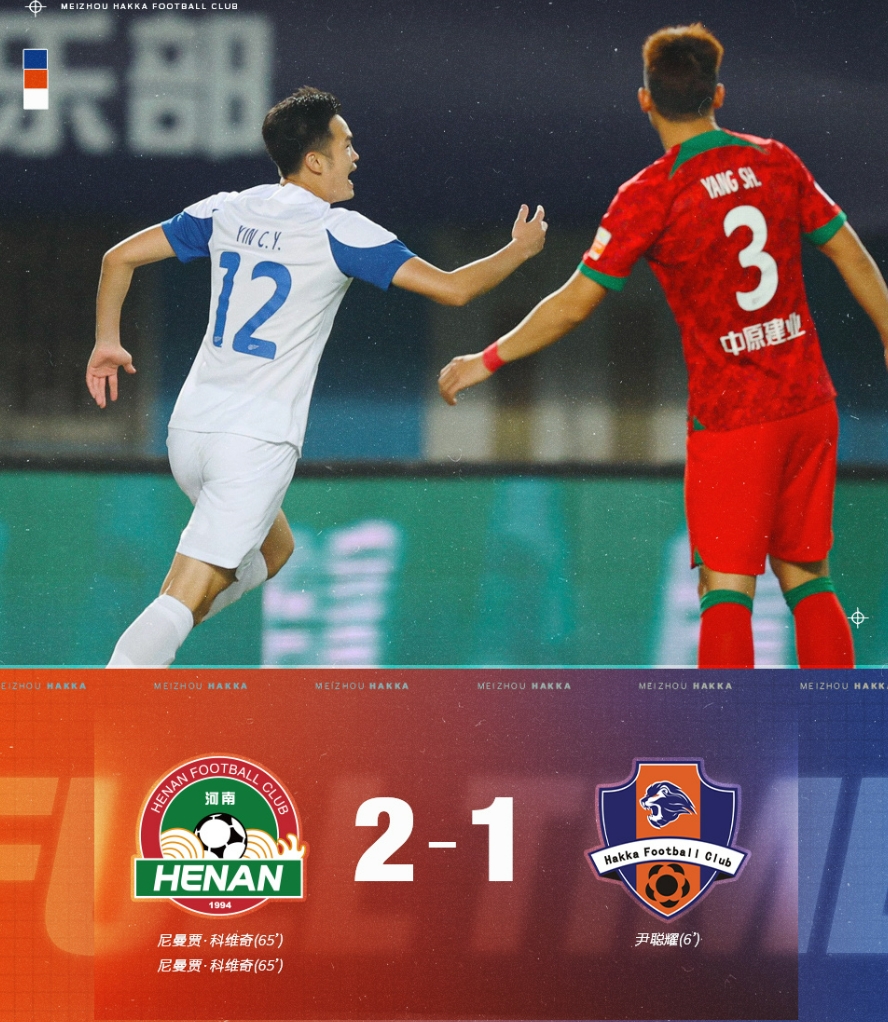 北京时间6月3日19:35,2023中国平安中国足球协会超级联赛第十一轮比赛,梅州客家做客郑州航海体育场对阵河南队。尹聪耀破门,科维奇梅开二度,梅州客家1-2客场不敌河南队。6月9日19:35,2023中国平安中国足球协会超级联赛第十二轮比赛,梅州客家将将在五华奥体中心惠堂体育场对阵沧州雄狮。