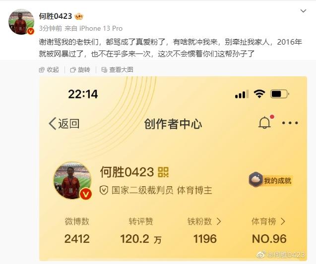 退钱哥:“谢谢骂我的老铁们,都骂成了真爱粉了,有啥就冲我来,别牵扯我家人,2016年就被网暴过了,也不在乎多来一次,这次不会惯着你们这帮孙子了 ”