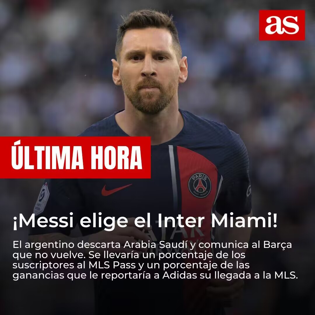 直播吧6月7日讯 马卡报、阿斯报、relevo等多家媒体确认,梅西选择加盟迈阿密国际。