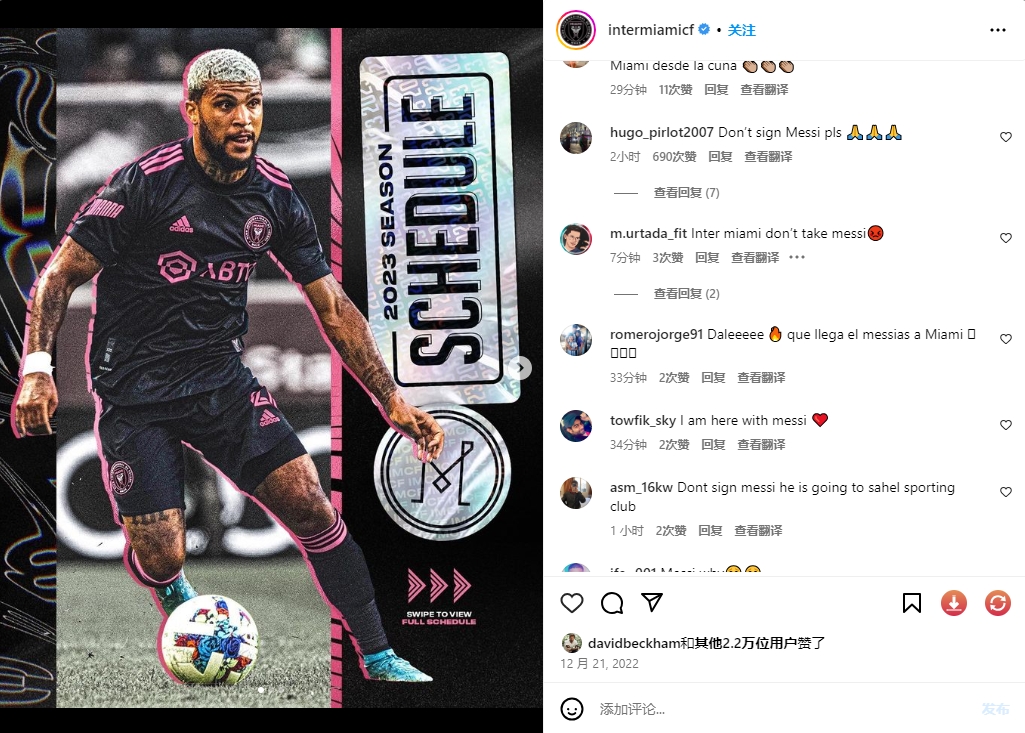 国外的众多球迷们显然不希望梅西离开五大联赛远赴美职联,迈阿密国际的官方ins账号下也遭到了球迷刷屏。