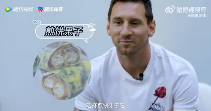 在去年接受中国媒体采访时,梅西曾被要求在烤毛鸡蛋、卤煮和煎饼果子中选择最想尝试的中国食物。梅西考虑之后选择了煎饼果子。