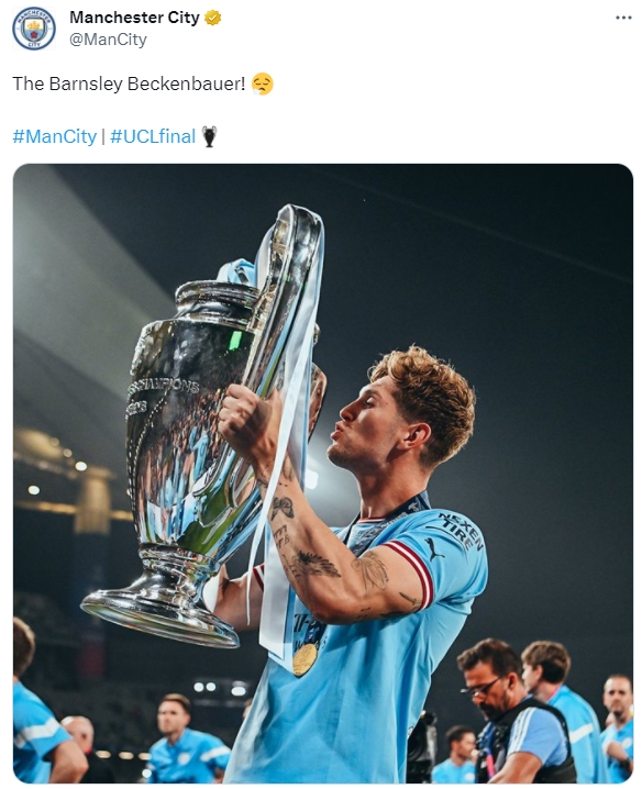 直播吧6月11日讯 欧冠决赛,曼城1-0击败国米,队史首夺欧冠冠军。