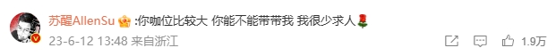 6月12日,苏醒评论薛之谦微博写道:你咖位比较大,你能不能带带我,我很少求人