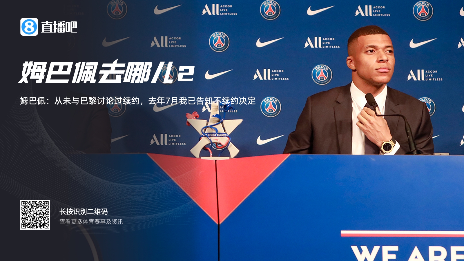 直播吧6月13日讯 姆巴佩在发给法新社的一份声明中明确表示:我从未与巴黎讨论过续约。