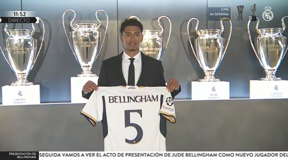 直播吧6月15日讯 皇马官方宣布,亿元新援贝林厄姆将身披5号球衣!这也是齐达内曾经的号码!
