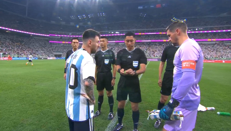 马宁为首的中国裁判组,赛前引导梅西和瑞安挑边