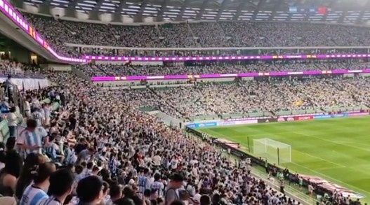 现场太燃了!梅西破门后工体现场球迷玩起人浪庆祝