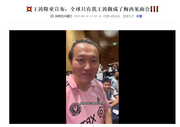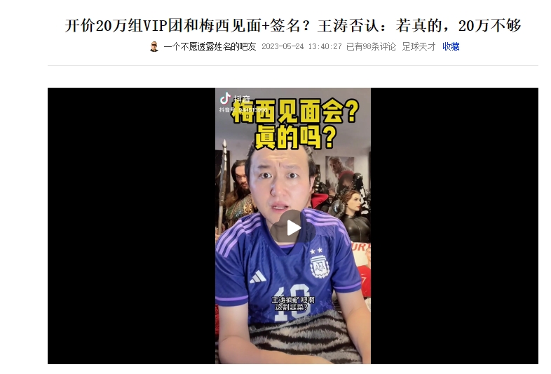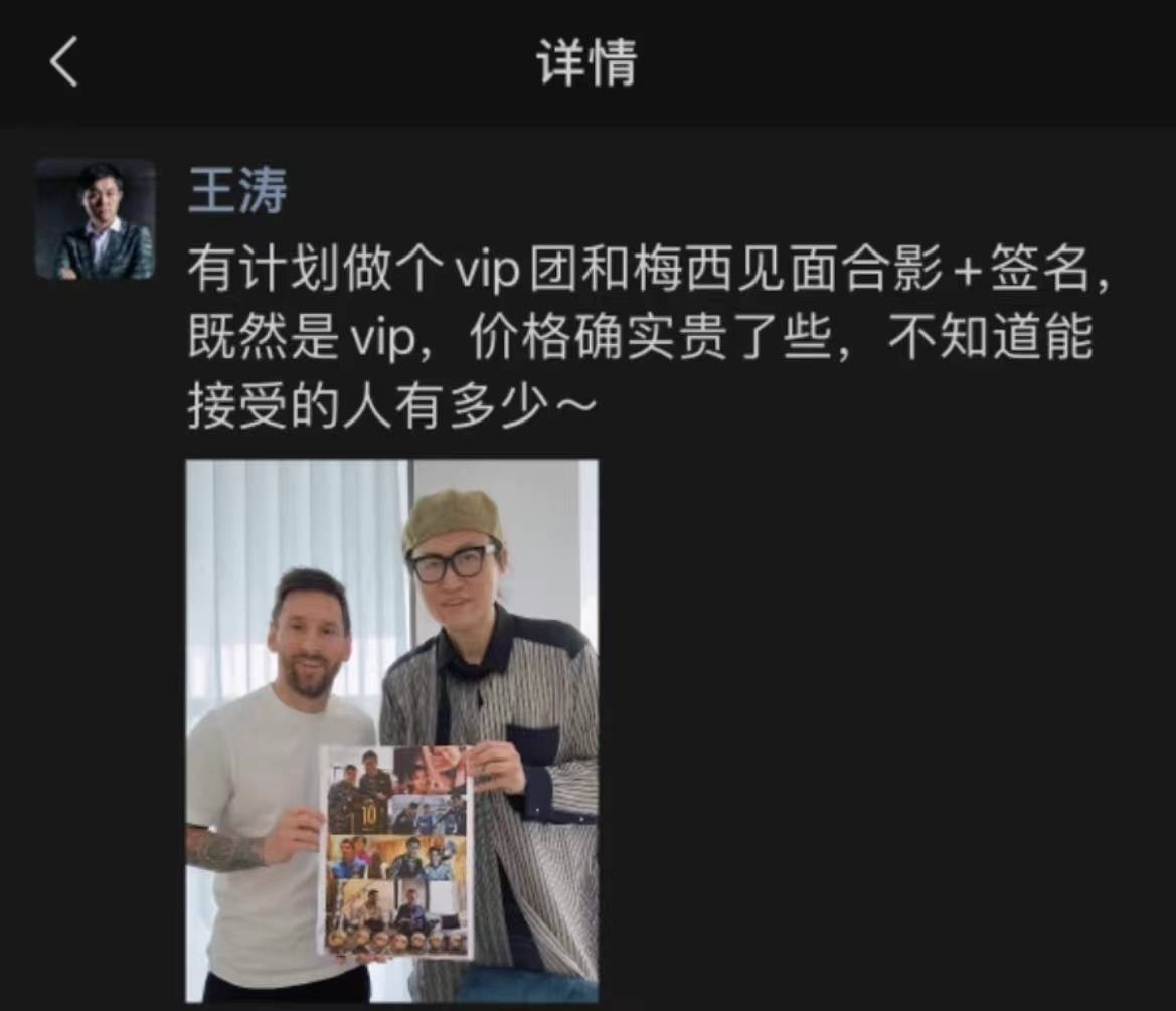 而此前王涛曾表示,想要参加见面会,和梅西合影+签名,20万都不够。