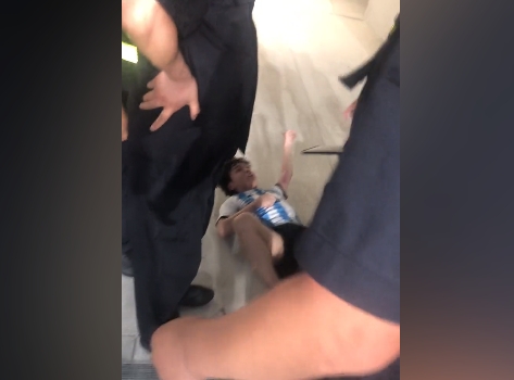 有网友晒出这位球迷当时被安保带走后的画面,他先是被众人抬到大约球员通道的地方,随后被放走并交还手机。