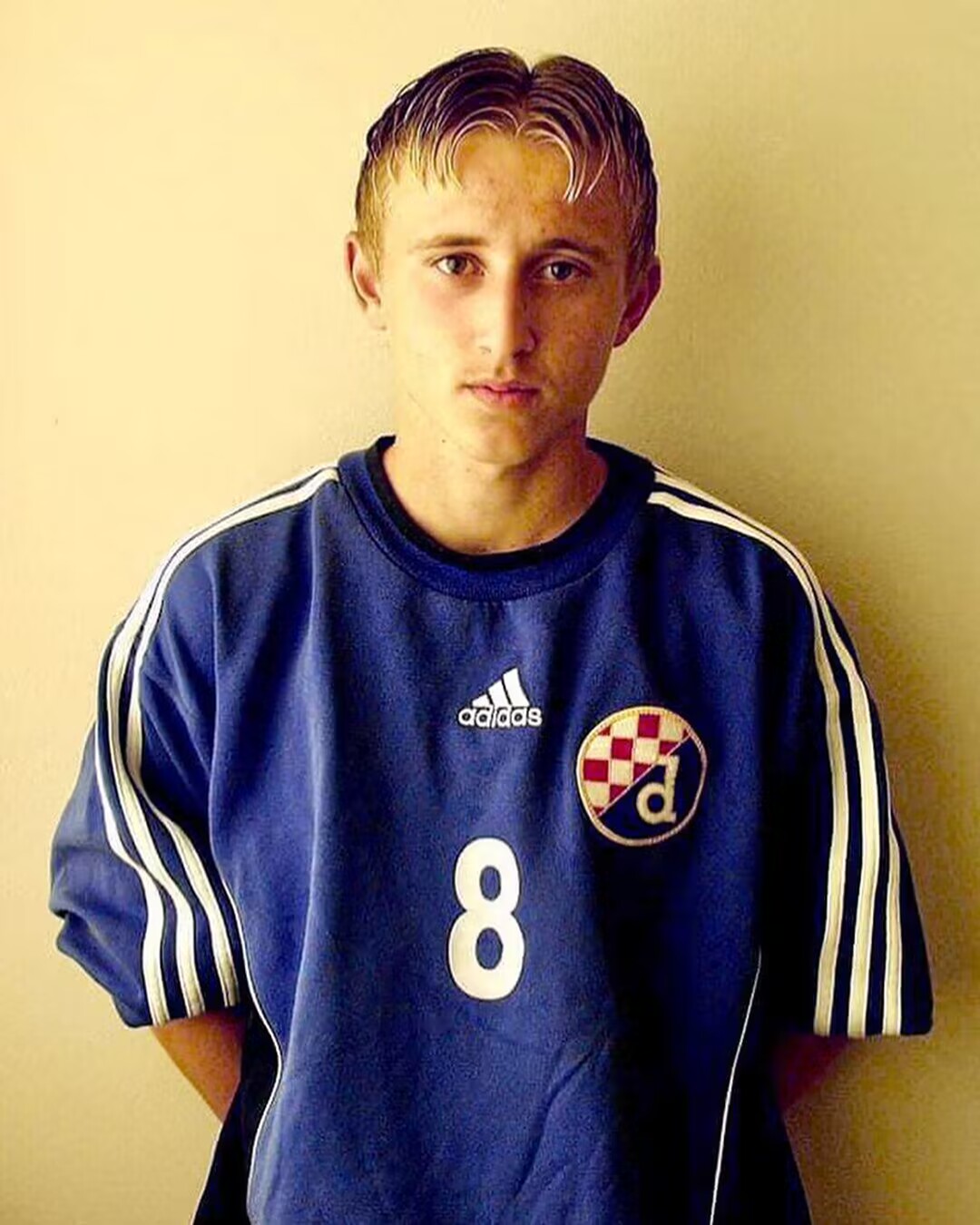 克罗地亚传奇中场莫德里奇效力皇马11年,目前37岁的他曾效力于热刺以及家乡球队萨格勒布迪纳摩。魔笛球风飘逸,可谓皇马的中场灵魂,他本人也在2018年荣获了金球奖。这张萨格勒布迪纳摩时期他的照片,你见过吗?