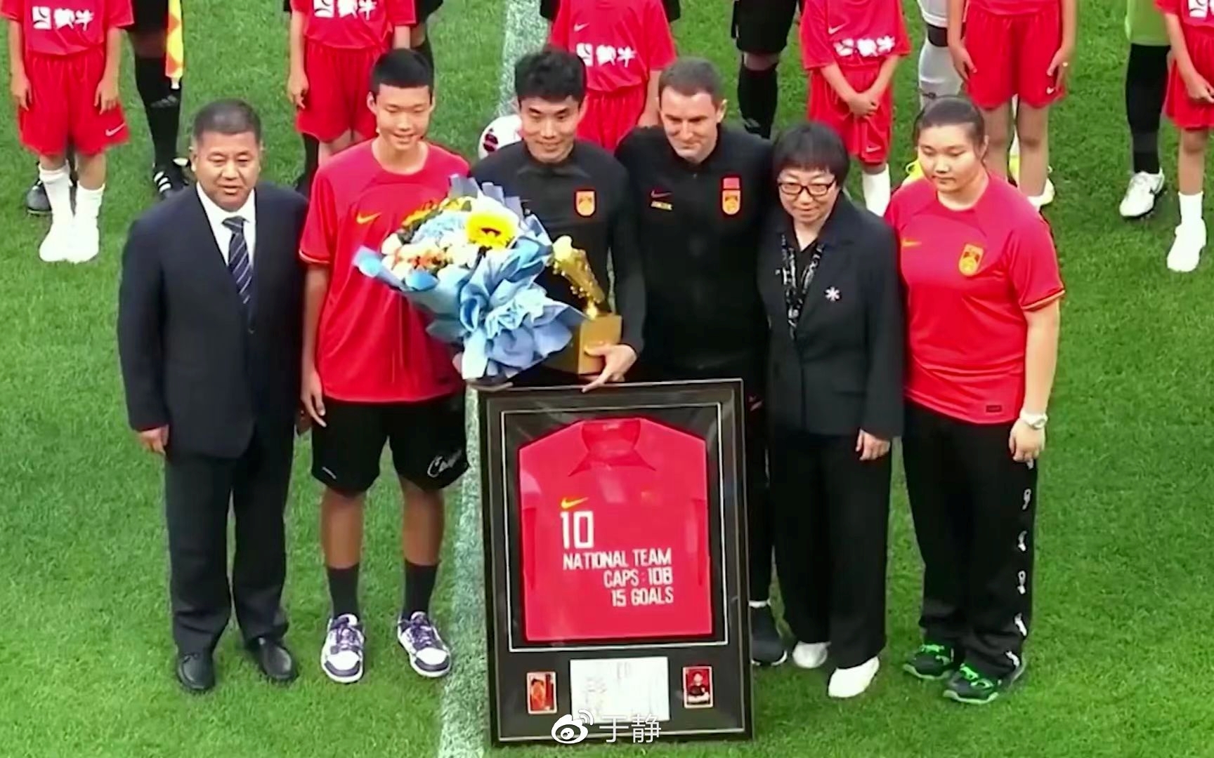 之前从我的内心深处曾想过,无论在俱乐部也好,在国家队也好,会不会有这么一个退役的仪式,其实一切都是顺其自然。但是当这个仪式真的到来时,确实是非常伤感与不舍,所以我一直在控制自己的情感。我要特别感谢这个中国足协能在国家队比赛之前为我举办这么一个仪式,让我这个以这种非常荣幸的方式结束自己的足球生涯。