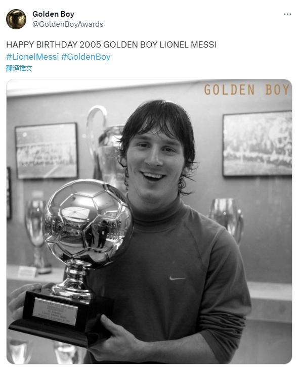 金童奖在其官方社交媒体上传了梅西获奖时的照片,并配文写道:“2005年金童奖得主梅西生日快乐。”