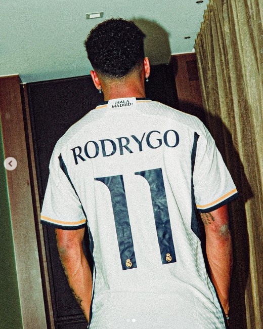 皇马此前官宣罗德里戈将在新赛季改穿11号球衣,今天俱乐部晒出了宣传照,罗德里戈身披了新赛季的皇马11号球衣。