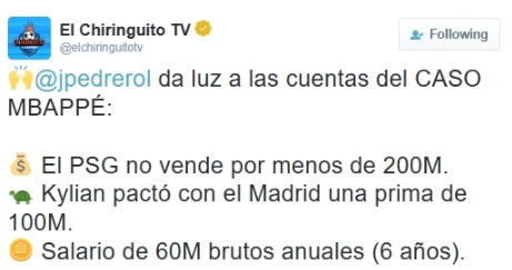 直播吧7月4日讯 西班牙六台主持人Josep Pedrerol透露姆巴佩转会的相关情况。