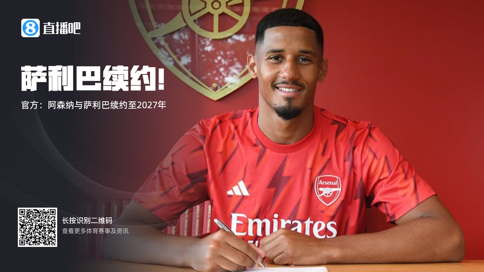 直播吧7月7日讯 官方消息,萨利巴与阿森纳完成续约,并改穿2号球衣。
