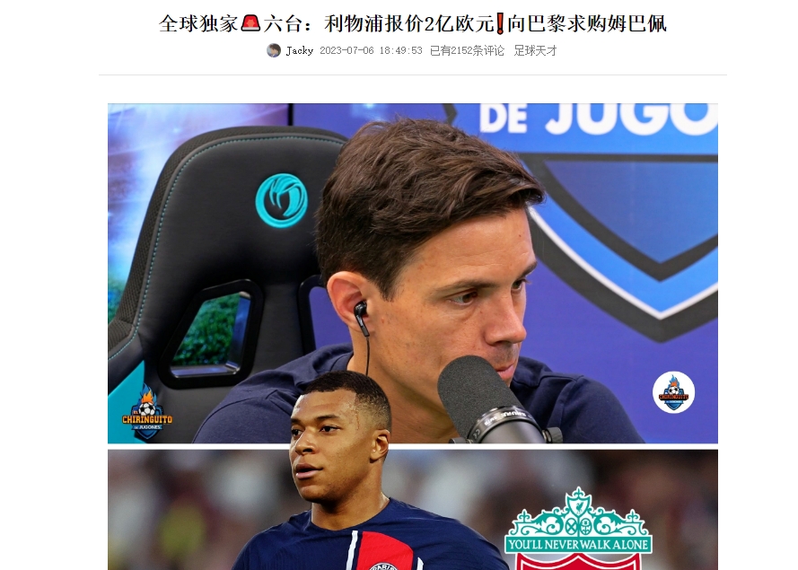 本周听到利物浦以2亿欧元(1.7亿英镑)的价格收购巴黎圣日耳曼队的姆巴佩,多少让人感到有些震惊。