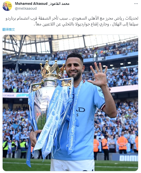 但据阿拉伯记者Mohamed Alkaoud的最新消息,马赫雷斯的转会现在被推迟处理,原因是曼城的另一名球员——28岁的B席将要加盟沙特联,前往利雅得新月。