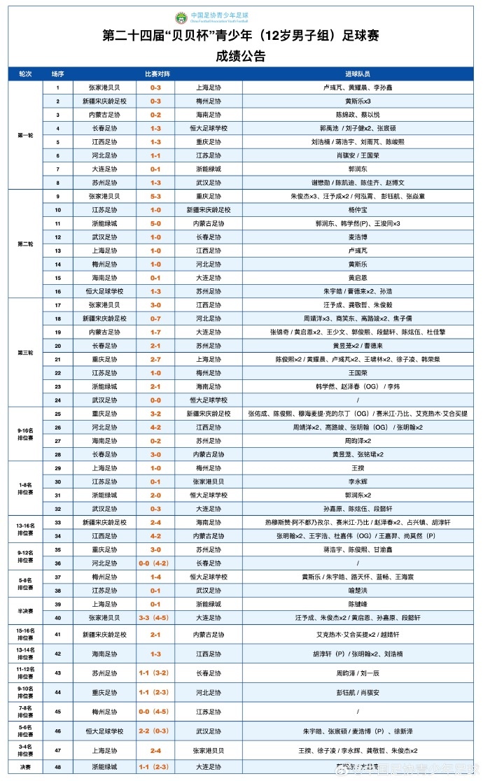 2023年中国足球协会第二十四届“贝贝杯”青少年(12岁男子组)足球赛圆满结束