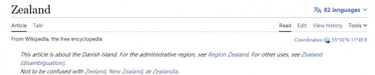 如果你去英语维基百科搜索Zealand,总会有这样提示:不是Zeeland(荷兰的泽兰省),新西兰或西兰大陆(Zealandia,对新西兰的称呼)。
