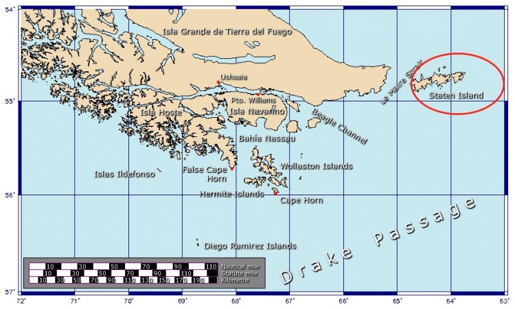 当时,塔斯曼的船队误认为这里是艾斯塔多岛(该岛位于阿根廷火地岛东部的岛屿,今属于阿根廷。荷兰语为Stateneiland)。