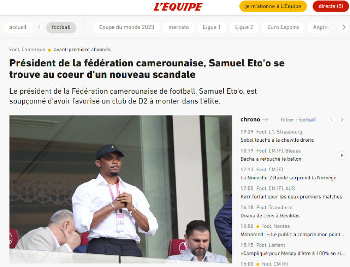 🚨队报:埃托奥是喀麦隆足坛丑闻的核心人物。